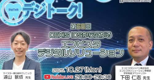 2025年10月27日(月)20:00より、「デジトーク」にてIOS(口腔内スキャナー)紹介シリーズを配信いたします。