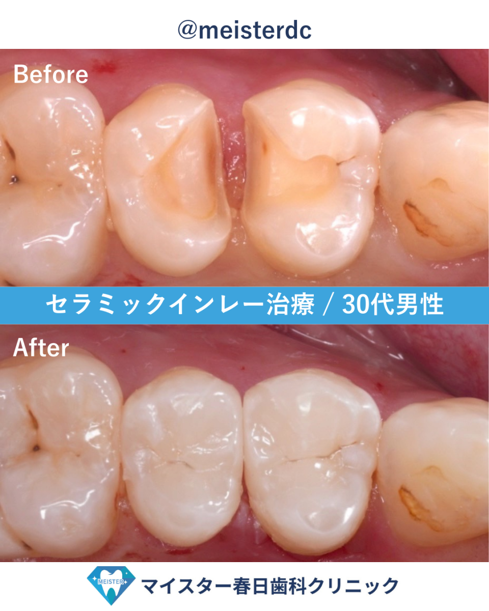 古い詰め物を除去したうえでセラミックインレーによる修復を行いました。